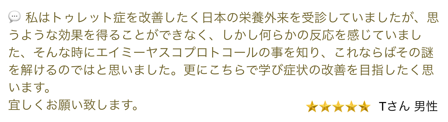 2016年現在、日本においてもアメリカのDr. Amy Yaskoの成果を聞いて、自分たちも取り組みたいというご家族が増えてきています。